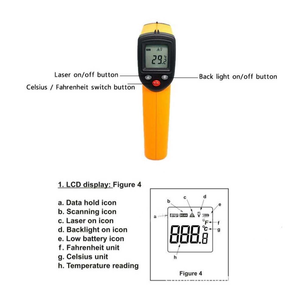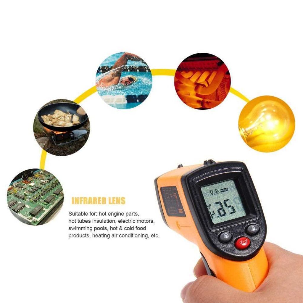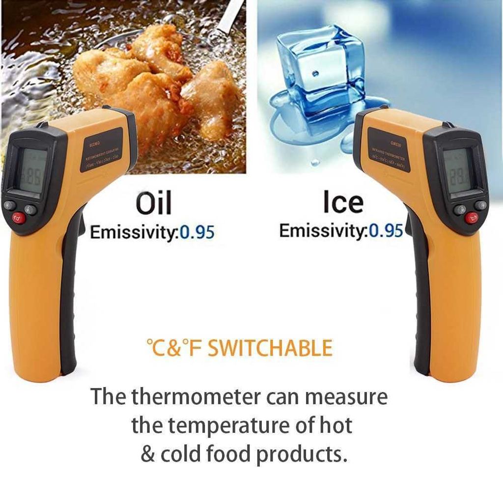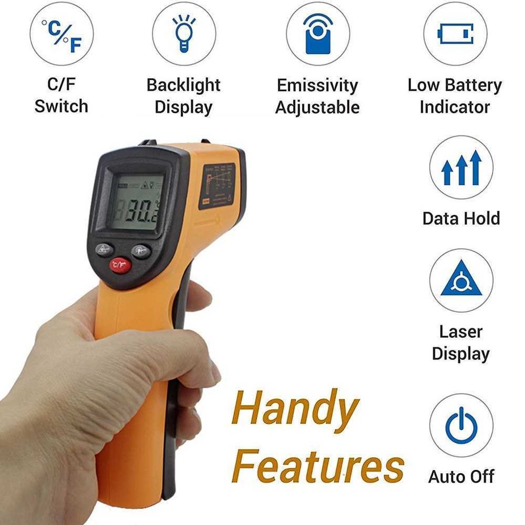 * Easy to use: Precise non-contact IR thermometer, safe and easy to use. Laser sight allows for accurate targeting. Simply point to an object and read its temperature.