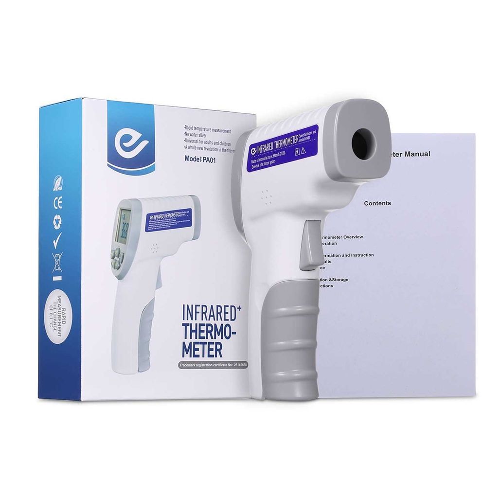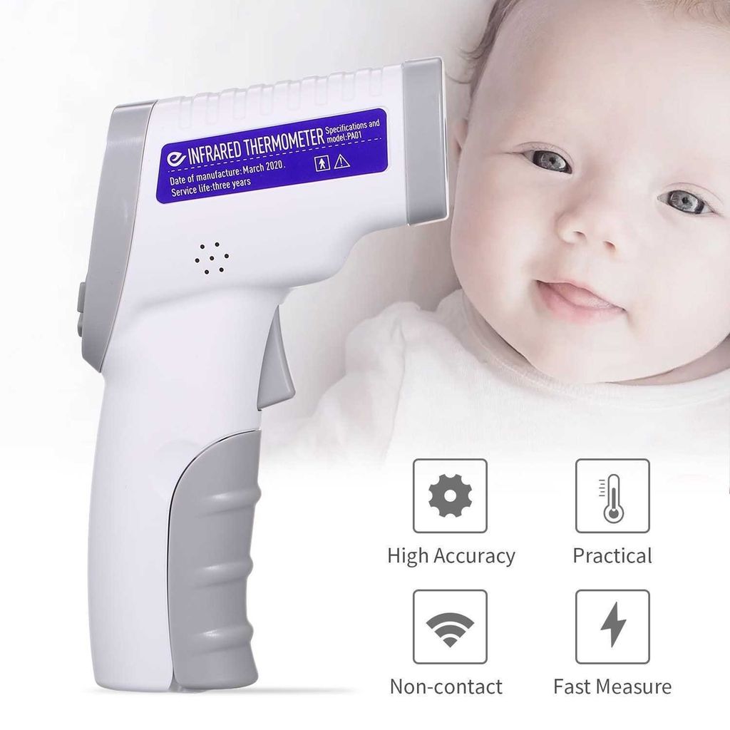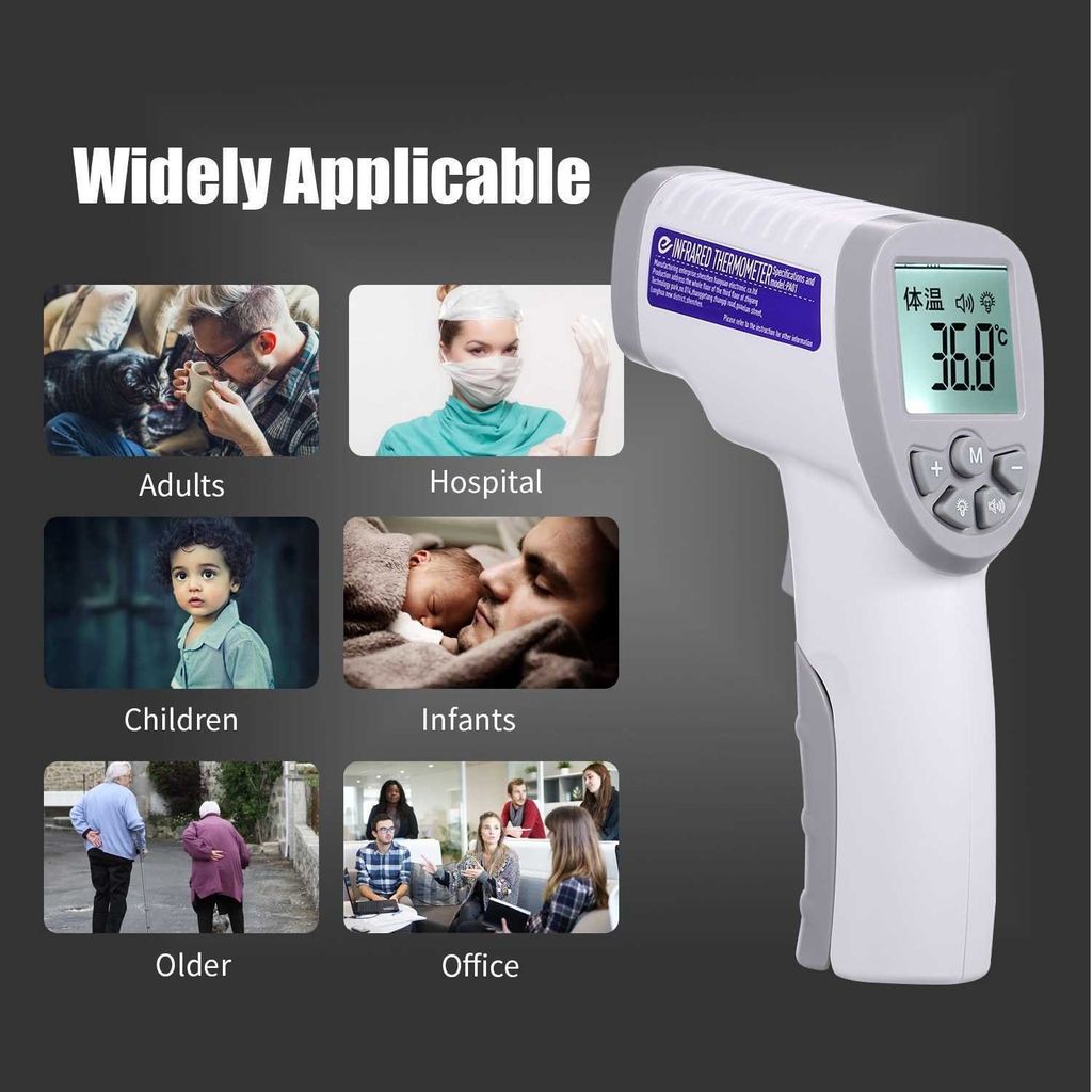 The non-contact IR infrared thermometer avoids touch skin, convenient measure baby's temperature. Safer and more convenient. The backlit LCD screen is easy to read in the dark. The digital thermometer is designed for all ages, adults, infants, and elders.